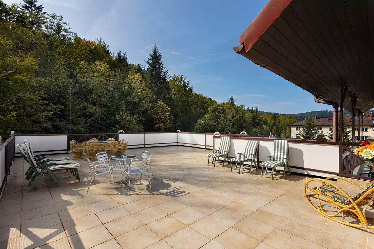 Pensjonat Familijny położony jest u stóp Góry Parkowej nad potokiem Palenica. Stanowi wyborny punkt wypadowy dla spacerów i górskich wycieczek.
